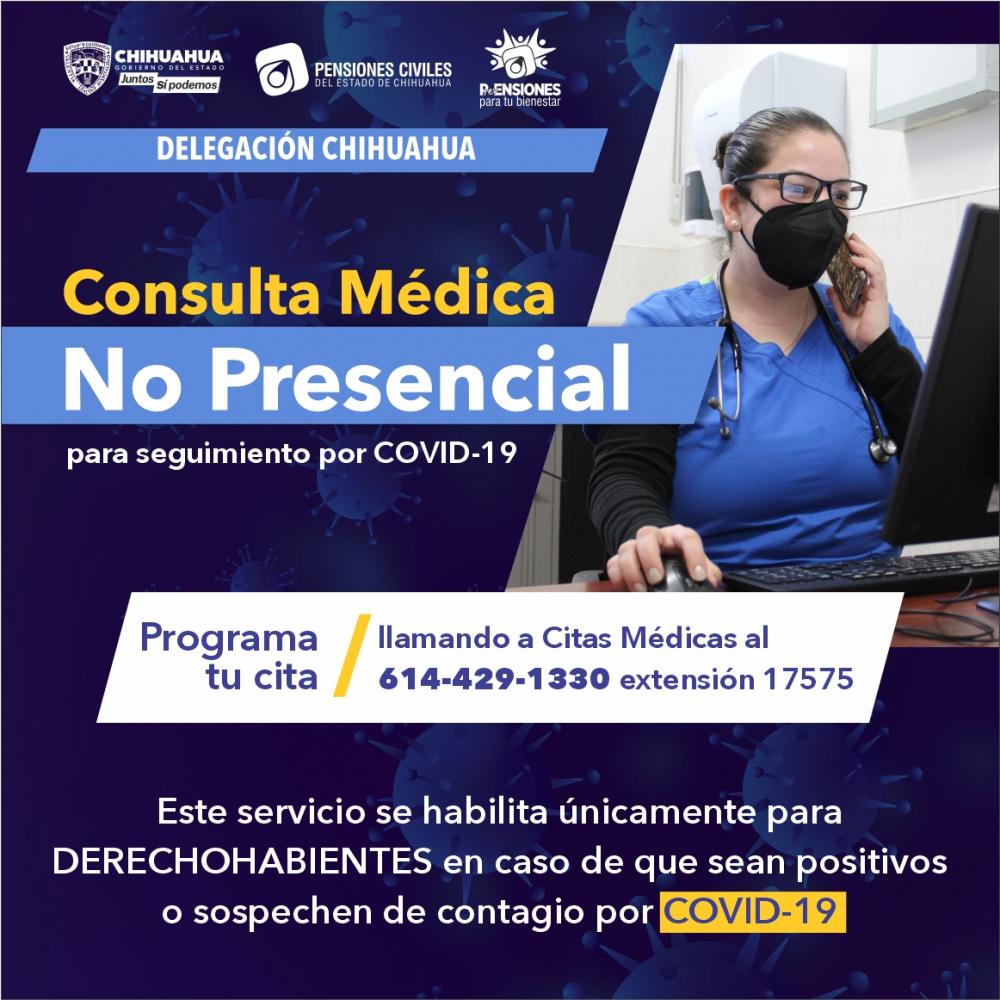 Pensiones Civiles del Estado (PCE), reactiva el servicio de citas médicas no presenciales para las y los derechohabientes de la Delegación Chihuahua con el fin de otorgar atención oportuna ante el aumento de casos por COVID-19 y para aquellos que sean positivos o con sospecha de padecer la enfermedad y así evitaro el que tengan que acudir a la institución.